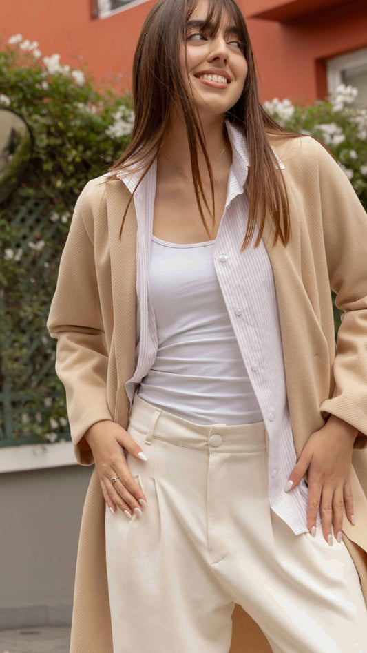 OfertaAbrigo Largo Tweed l Beige