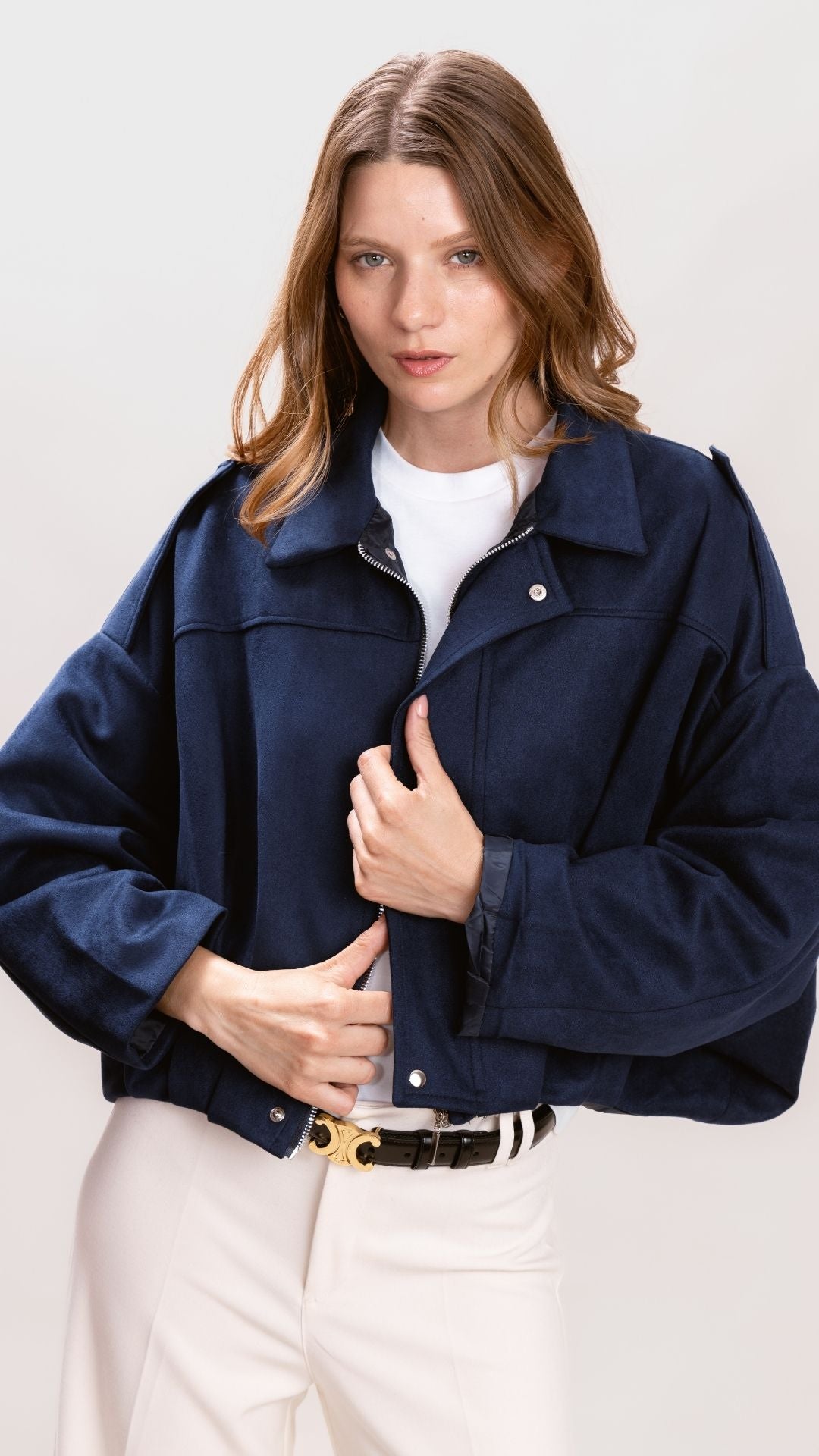 Si pensamos en una casaca holgada y perfecta para la media estación, seria esta. La textura suave del suede se combina con un diseño moderno para darte una casaca que eleva cualquier look, tiene el toque sofisticado que tu outfit necesita. Ligera, versátil y con un fit que destaca tu estilo en cualquier ocasión.